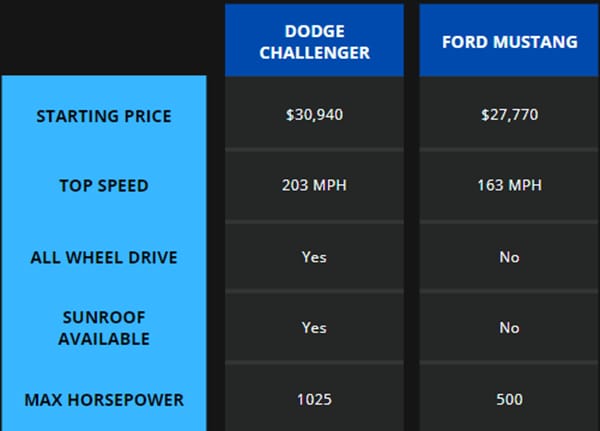 So, which muscle car is superior? The fast and powerful Dodge Challenger currently for sale in Hilton Head or the Ford Mustang, which holds the record for being one of the most popular muscle cars in automotive history? Continue reading to find out which vehicle offers the best value for the money.