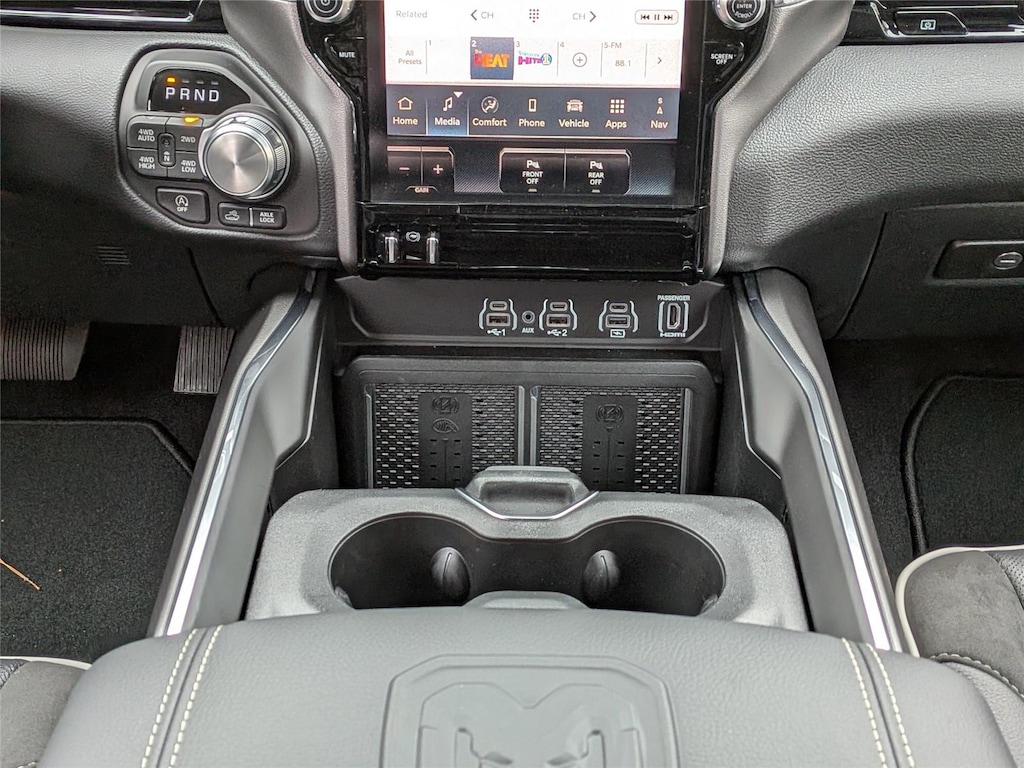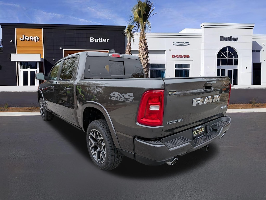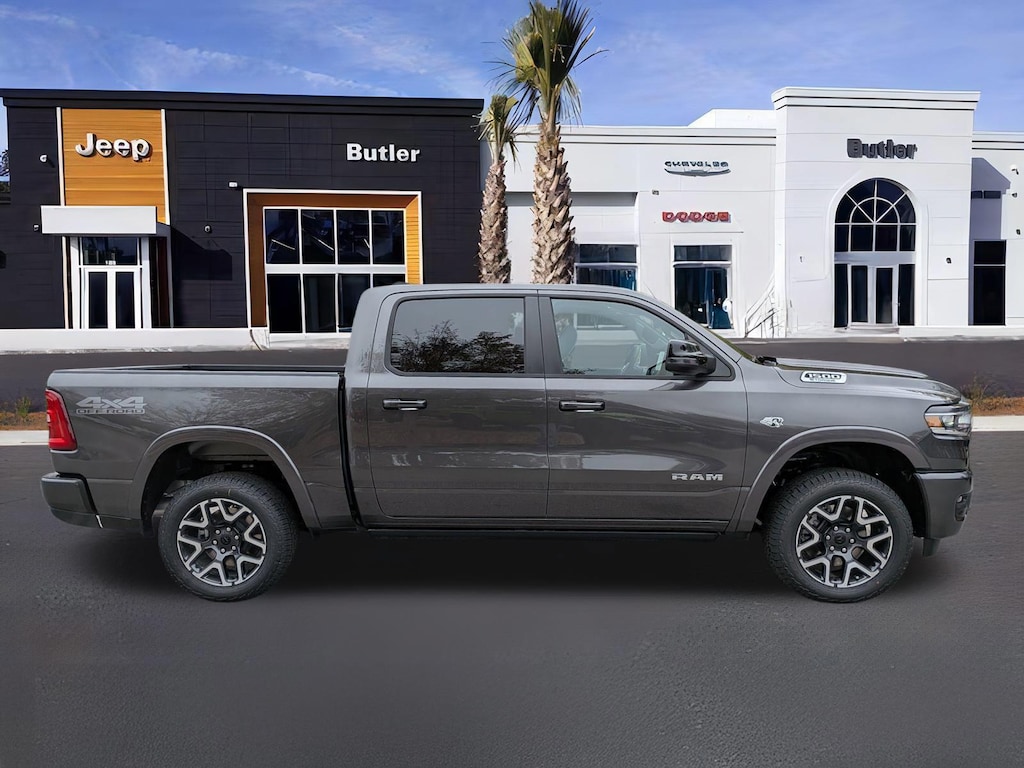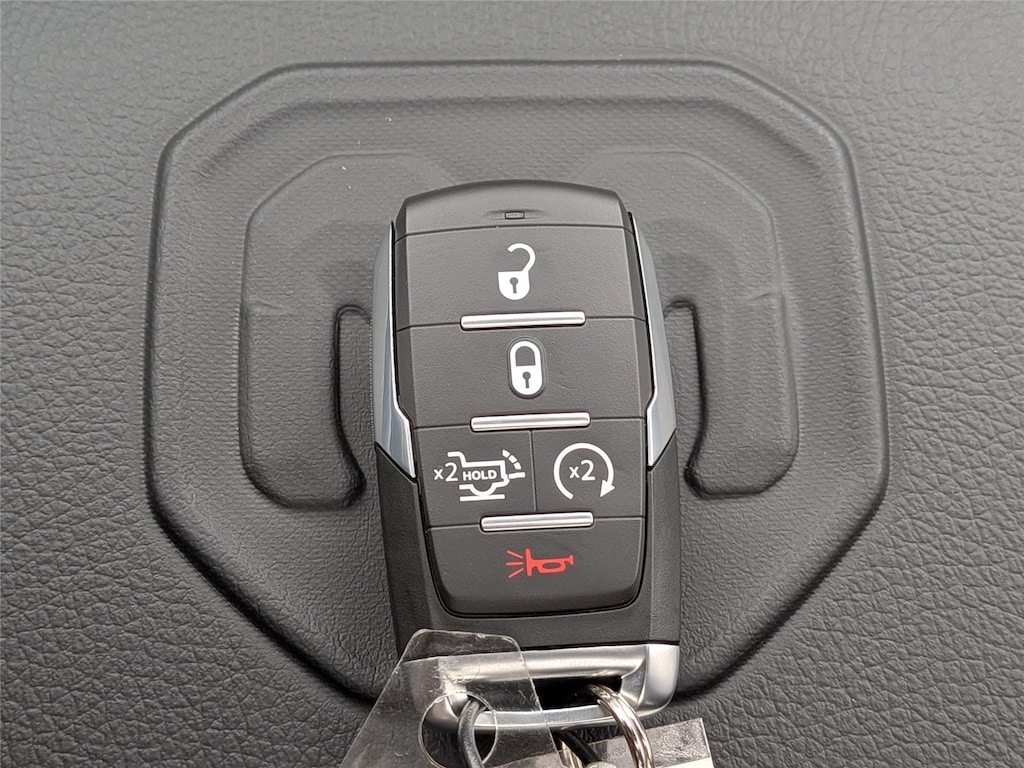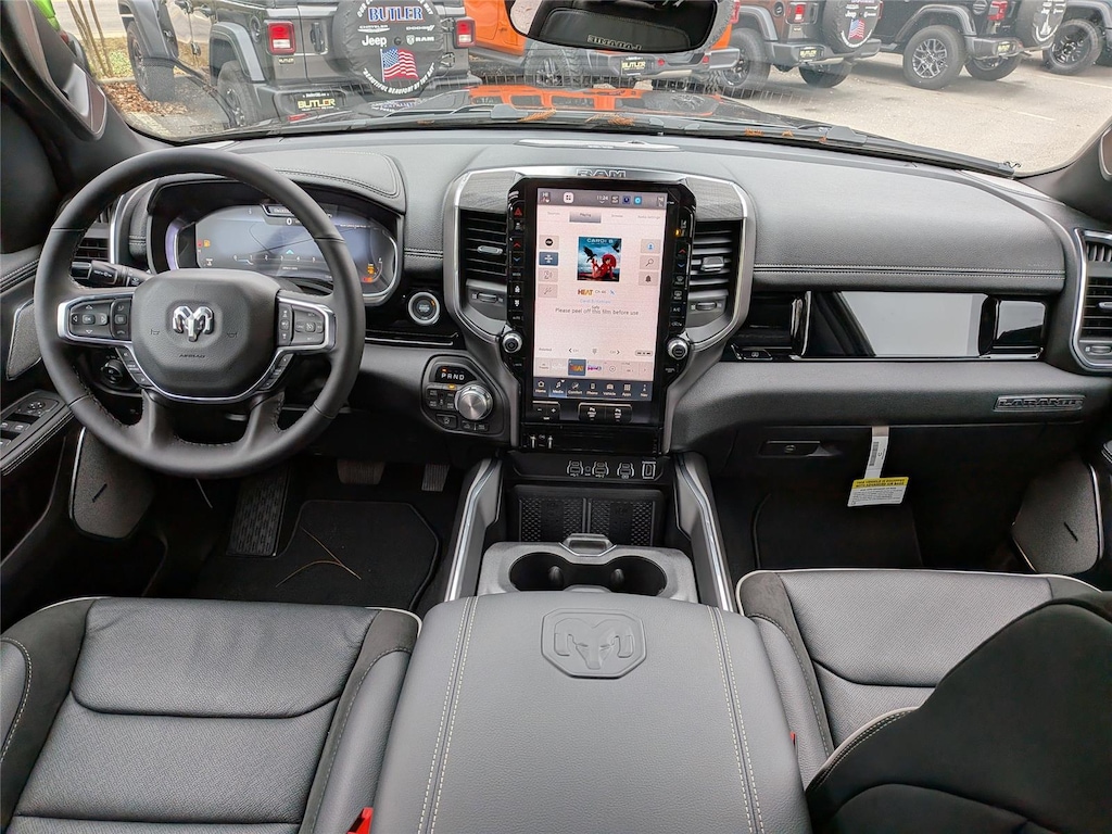 ENGINE: 5.7L V8 HEMI MDS VVT ETORQUE, TRANSMISSION: 8-SPEED AUTOMATIC (8HP75), QUICK ORDER PACKAGE 27H LARAMIE, 3.92 REAR AXLE RATIO, WHEELS: 20 X 9 PREMIUM PAINT/POLISH, TIRES: 275/55R20 BSW ALL-TERRAIN, GRANITE CRYSTAL METALLIC CLEARCOAT, BLACK, LEATHER TRIMMED BUCKET SEATS, LARAMIE LEVEL 2 EQUIPMENT GROUP, OFF ROAD GROUP, LARAMIE PREFERRED PACKAGE, MYFLEXCARE SERVICE PLAN, TRAILER BRAKE CONTROL, E-LOCKER REAR AXLE, DUAL-PANE PANORAMIC SUNROOF, POWER DEPLOYABLE RUNNING BOARDS, RADIO: UCONNECT 5 NAV W/14.4 DISPLAY, MANUFACTURER'S STATEMENT OF ORIGIN
