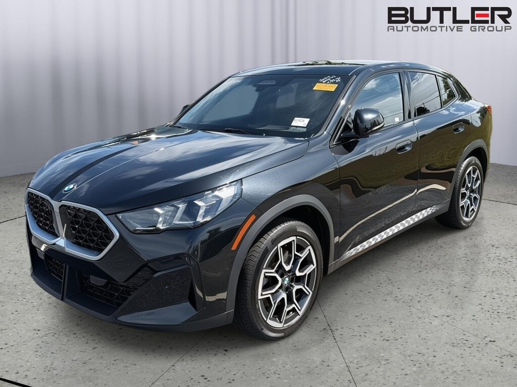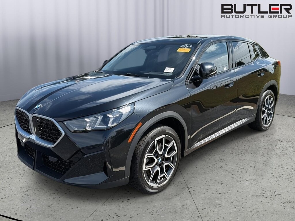 This 2024 BMW X2 is Black Sapphire Metallic with an Atlas Grey/Smoke White Interior. It comes very well equipped with a Driving Assistance Pro Package (ACC Stop & Go + Active Driving Assistant, Lane Keeping Assistant, Traffic Jam Assistant), Premium Package ( Universal Garage-Door Opener, Panoramic Moonroof, Interior Camera, Harman/Kardon Surround Sound System, BMW Digital Keiy Plus with UWB, Anti-Theft Recorder, Parking View with 3D View), Premium Content 1 (Power Folding Mirrors, Parking Assistant Plus, Wireless Device Charging, Live Cockpit Pro (incl. HUD, Video AR), Harman/Kardon Premium Sound System, Universal Garage Door Opener, Comfort Access Keyless Entry, Auto-Dimming Mirrors, Auto-Dimming Rearview Mirror), Automatic Transmission, 19" Alloy Wheels, Aluminum Mesh Effect Trim w/ Ambient Light, Navigation System, Active Park Distance Control, Active Driving Assistant, Tire Pressure Monitor, Multifunction Steering Wheel, Rearview Camera, Privacy Glass, Dual Zone Auto Climate Control, Connected Drive Services, Daytime Driving Lights, Apple CarPlay/Android Auto Compatibility, Active Blind Spot Detection, Space Saver Spare, SensaTec Dashboard, Frontal Collision Warning w/ City Collision Mitigation, Lane Departure Warning, Anthracite Headliner, Speed Limit Info, 5AT Preparation for FOD, Illuminated Kidney Grille, and Shadowline Exterior Trim. This BMW X2 comes with a BMW Certified/Unlimited Mileage Warranty with coverage until 04/19/2029. Please ask for Internet Sales to receive this special internet offer!