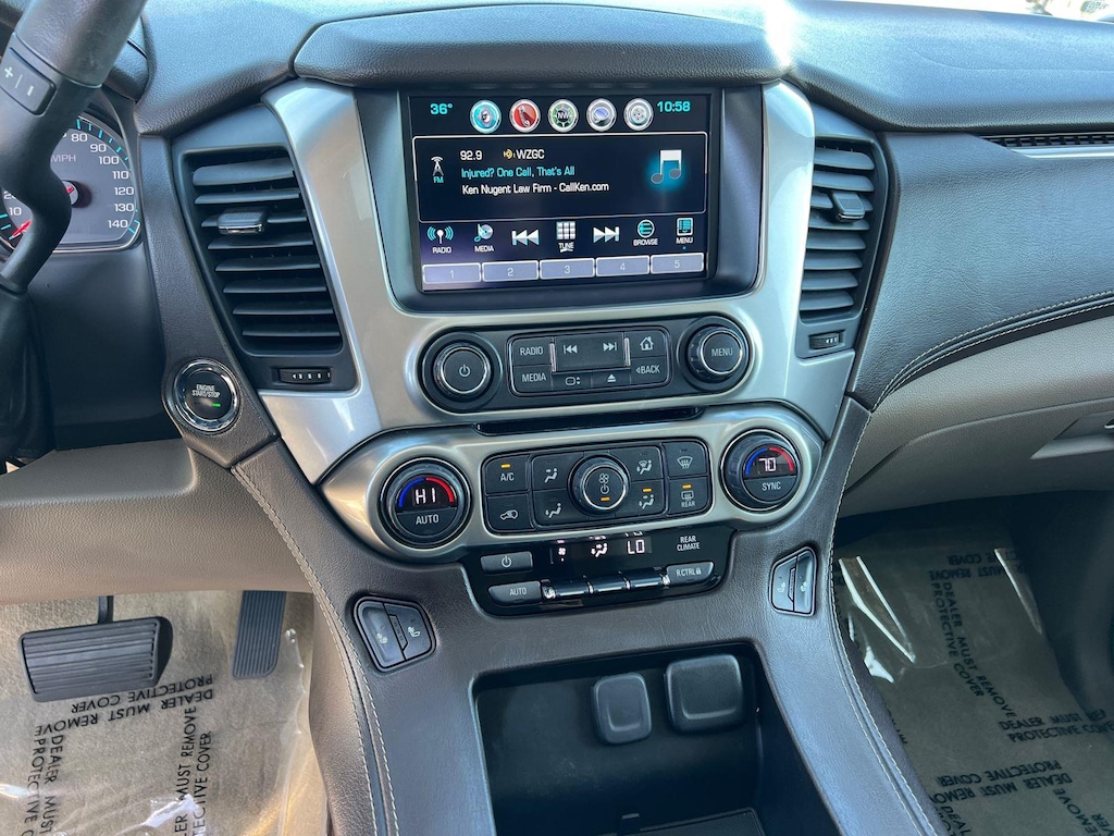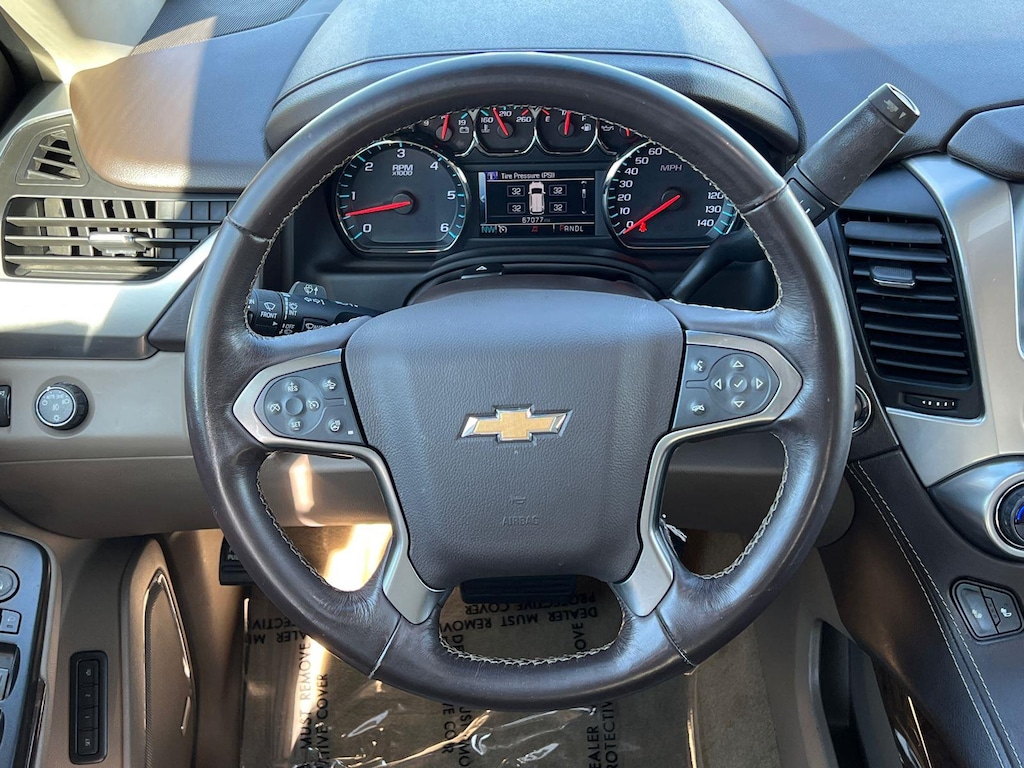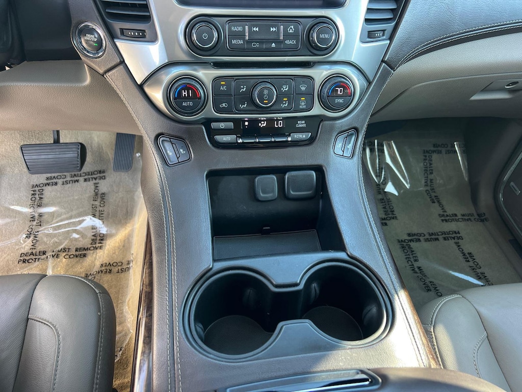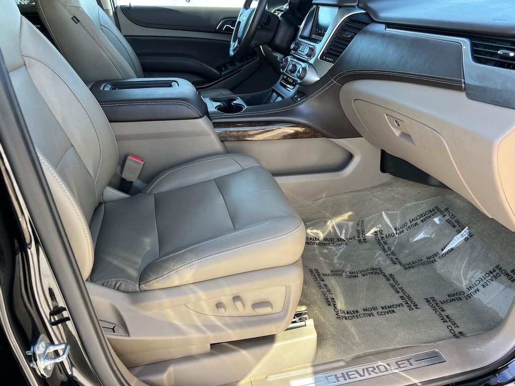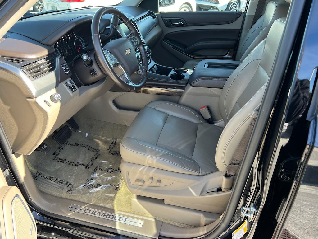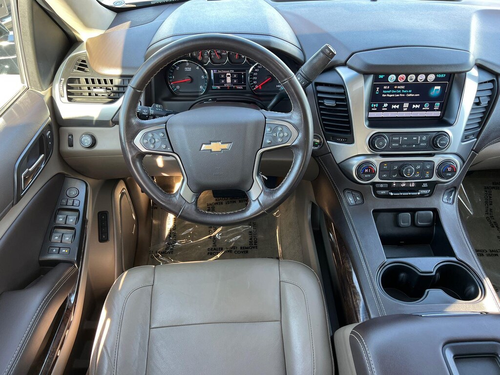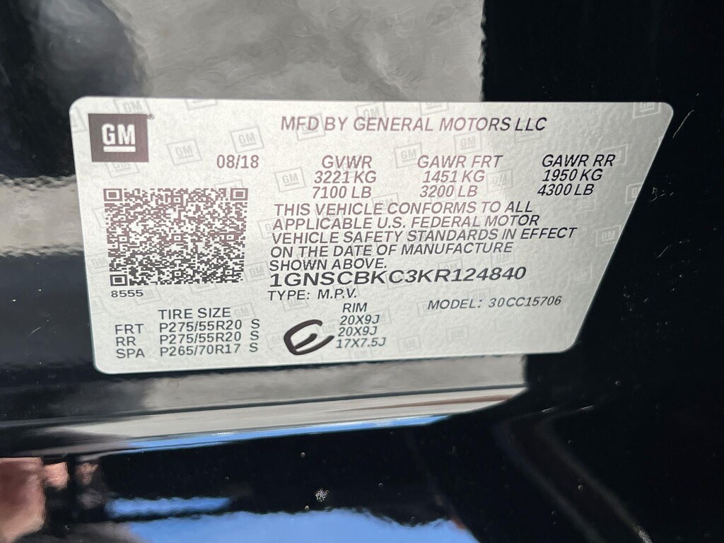 SUSPENSION PACKAGE, STANDARD, INCREASED CAPACITY, PREMIUM SMOOTH RIDE, EMISSIONS, FEDERAL REQUIREMENTS, ENGINE, 5.3L ECOTEC3 V8 WITH ACTIVE FUEL MANAGEMENT, DIRECT INJECTION AND VARIABLE VALVE TIMING, TRANSMISSION, 6-SPEED AUTOMATIC, ELECTRONICALLY CONTROLLED, REAR AXLE, 3.42 RATIO, WHEELS, 20 X 9 (50.8 CM X 22.9 CM) POLISHED-ALUMINUM, TIRES, P275/55R20 ALL-SEASON, BLACKWALL, TIRE, SPARE P265/70R17 ALL-SEASON, BLACKWALL, PAINT SCHEME, SOLID APPLICATION, BLACK, SEATS, FRONT BUCKET WITH LEATHER-APPOINTED SEATING, COCOA/DUNE, LEATHER-APPOINTED SEAT TRIM, AUDIO SYSTEM, 8 DIAGONAL COLOR TOUCH-SCREEN NAVIGATION WITH CHEVROLET INFOTAINMENT, LUXURY PACKAGE, SUN, ENTERTAINMENT AND DESTINATIONS PACKAGE, MAX TRAILERING PACKAGE, KEYLESS START, PUSH BUTTON, TRAILER BRAKE CONTROLLER, INTEGRATED, LPO, WHEEL LOCKS, SET OF 4, SUNROOF, POWER, TILT-SLIDING, FOG LAMPS, MIRRORS, OUTSIDE HEATED POWER-ADJUSTABLE, POWER-FOLDING AND DRIVER-SIDE AUTO-DIMMING, LICENSE PLATE FRONT MOUNTING PACKAGE, LIFTGATE, POWER, HANDS FREE, ENTERTAINMENT SYSTEM, REAR SEAT, BLU-RAY/DVD, SEATS, SECOND ROW BUCKET, POWER RELEASE, SEATS, HEATED SECOND ROW OUTBOARD SEATS, SEATS, THIRD ROW 60/40 SPLIT-BENCH, POWER FOLD, LPO, ALL-WEATHER FLOOR LINER PACKAGE, STEERING COLUMN, POWER TILT AND TELESCOPIC, STEERING WHEEL, HEATED, LEATHER-WRAPPED AND COLOR-KEYED, PASSIVE ENTRY SYSTEM, FRONT AND REAR PARK ASSIST, REAR CROSS TRAFFIC ALERT, LANE CHANGE ALERT WITH SIDE BLIND ZONE ALERT