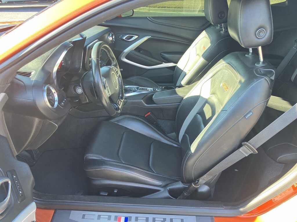 Additionally, there were several added factory options on this Camaro. These are a Power Sunroof, Dual Mode Performance Exhaust, Chevrolet Infotainment 3 Premium w/navigation, Black Metallic Center Stripe, Orange Calipers, & 20 5-Spoke Carbon Flash Painted Aluminum Wheels.