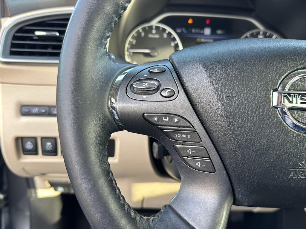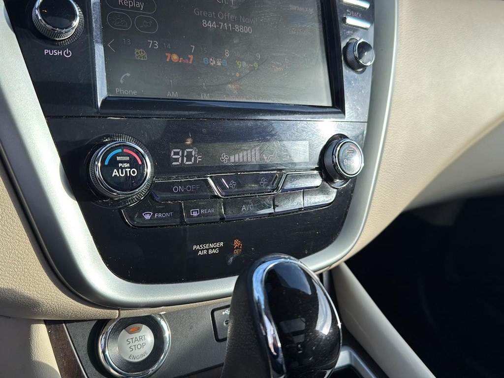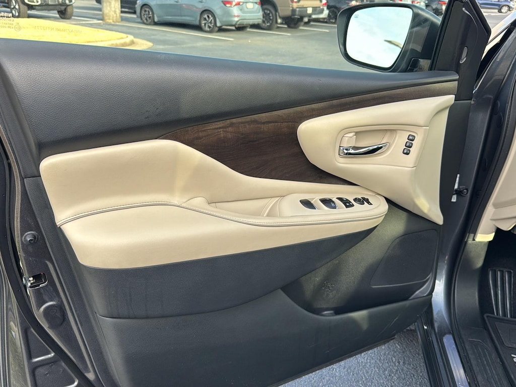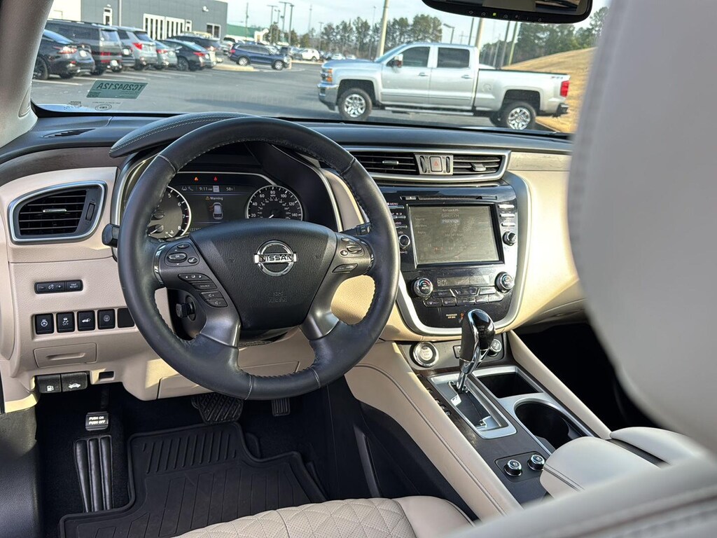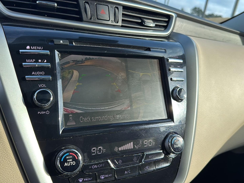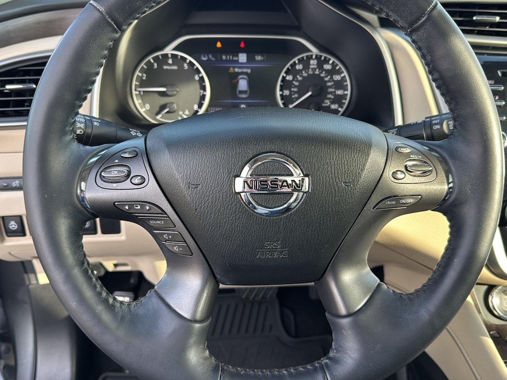 This Murano is equipped with Intelligent Forward Collision Warning with Automatic Emergency Braking, Pedestrian Detection, Intelligent Lane Intervention, Rear Automatic Braking, Intelligent Cruise Control, Traffic Sign Recognition, and an Aerial View Camera system-providing 360-degree awareness and protection.