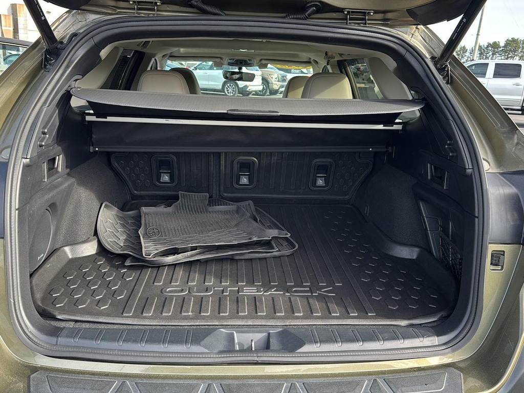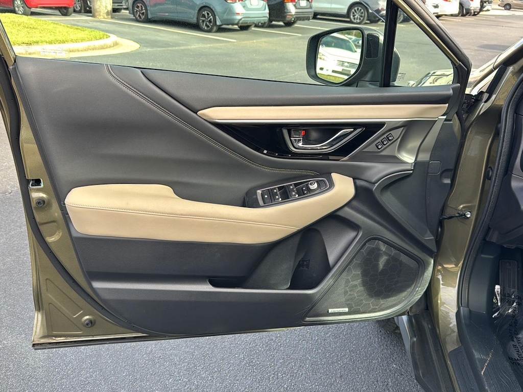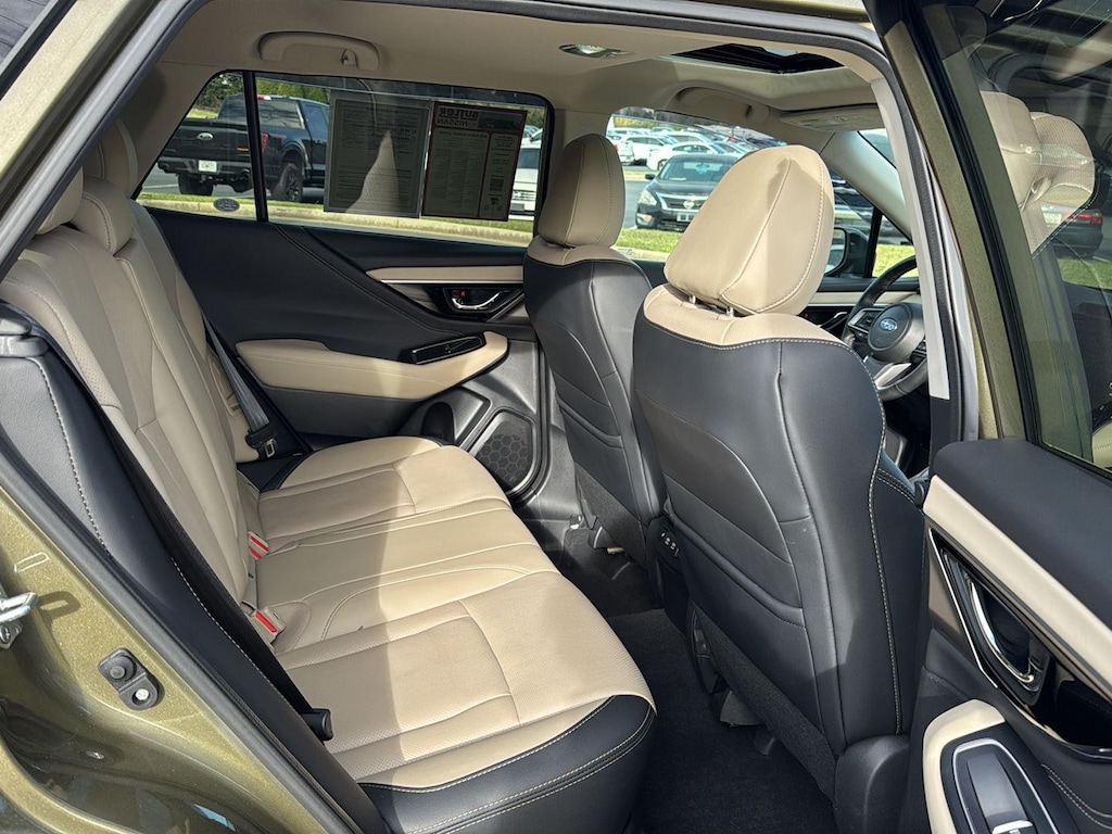 This Outback Limited is loaded with premium amenities including leather front seat upholstery, heated front and rear seats, and a power liftgate for easy cargo access. Enjoy seamless connectivity with STARLINK, Apple CarPlay, and Android Auto smart device mirroring, plus Bluetooth wireless audio streaming. The voice-activated climate control and push-button start with smart key access make every drive effortless. Additional highlights include a power moonroof, navigation system, and split folding rear seats for maximum versatility.