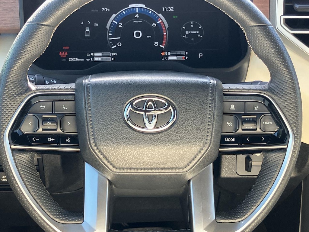 The non-hybrid versions of the 2023 Tundra were all powered by the 3.4L V6 turbocharged engine and paired to a 10-speed automatic transmission. This pairing offered up to 389 HP and 479 lb-ft. of torque, plus a maximum tow rating of up to 11,050 lbs. when properly equipped.