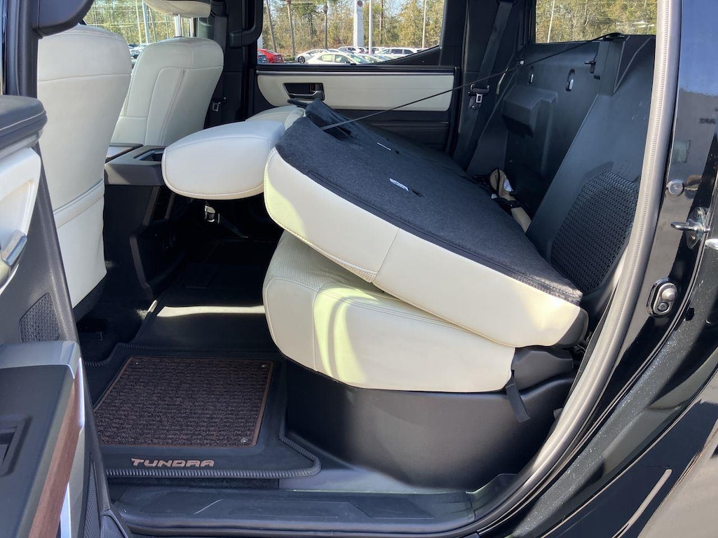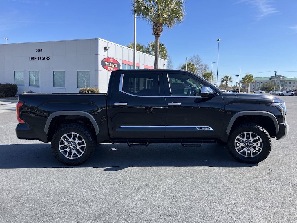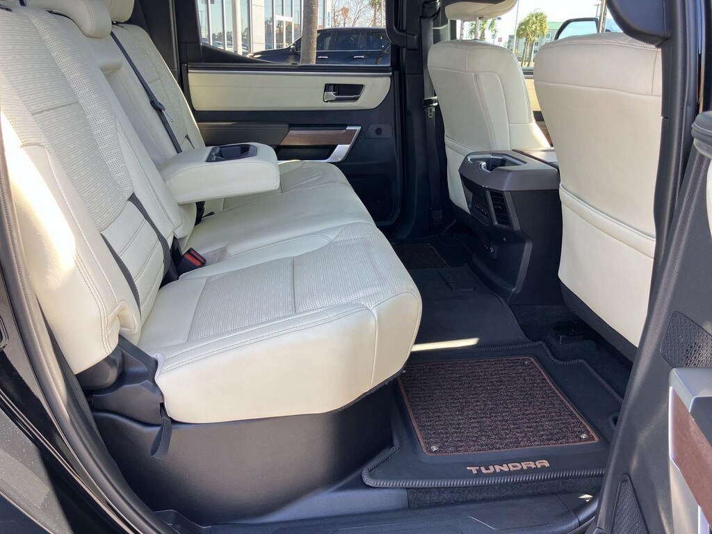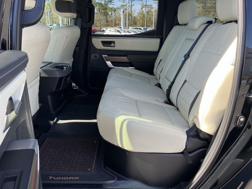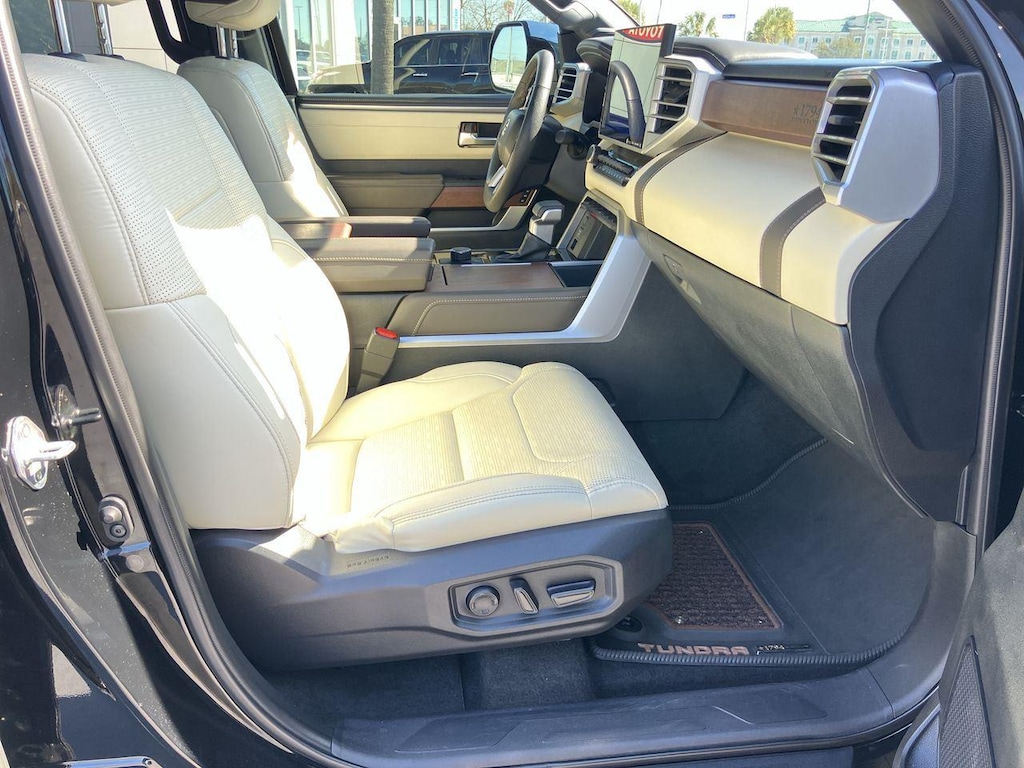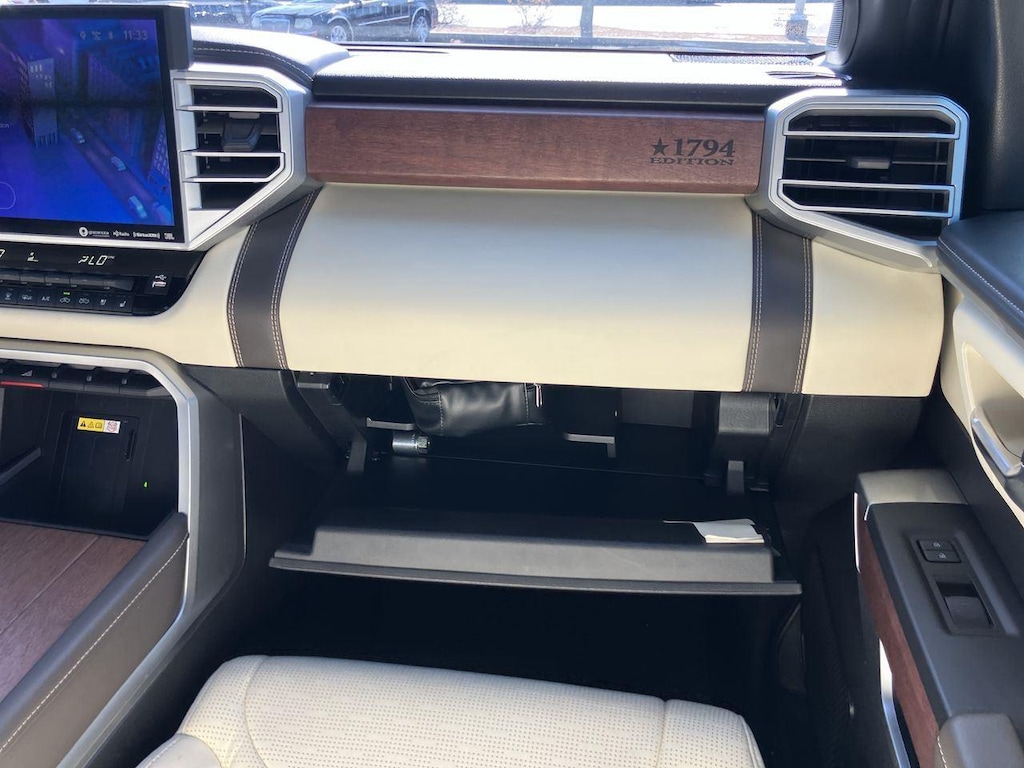 The 1794 Trim is one of the plusher trims for the Tundra. With unique trim and badging to pay tribute to the ranch style, it is equipped very similar to the Limited trim with Simulated leather upholstery, Heated and ventilated front seats, 14-inch center touchscreen, Dual-zone automatic climate control, Power vertical-sliding rear window, & Tailgate release button mounted to driver's side taillight.