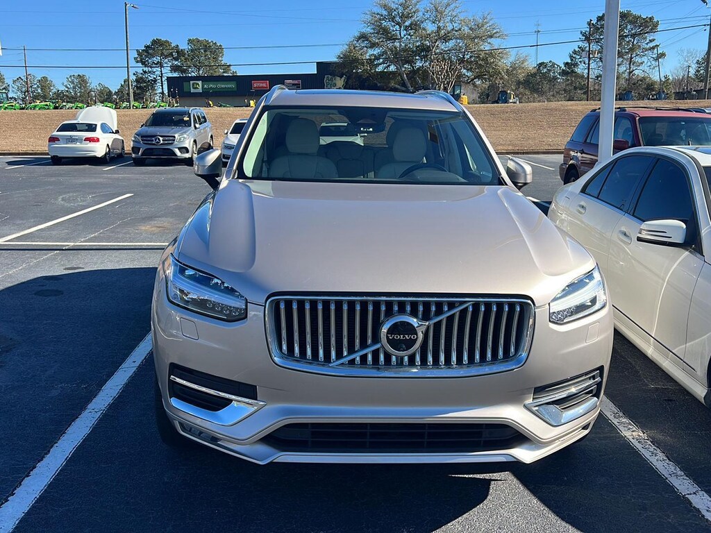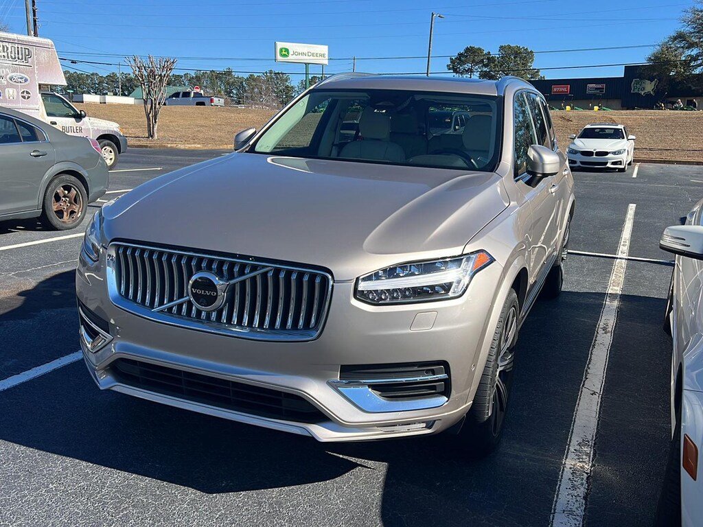 This 2024 Volvo XC90 B6 Plus 7P AWD SUV has a 2.0L Turbo & E-Charged Direct Injected Engine and is Bright Dust Metallic ($645) with a Blond/Charcoal Leather Interior and 34,834 miles. This Volvo XC90 B6 Plus 7P AWD SUV comes very well equipped with an 8-Speed Geartronic Automatic Transmission w/Start/Stop, Optional Features: Plus Features - Heated Steering Wheel, Heated Rear Seats, Headlight High Pressure Cleaning, Park Assist Front, Rear and Side, 360 Degree Surround View Camera, Interior High Level Illumination, Illuminated Volvo Tread Plate, Integrated Center Booster Cushion Protection Package ($640), Laminated Panoramic Sunroof with Power Sunshade, Bright Integrated Roof Rails, Bright Chrome Bars in Front Grille, Bright Chrome Window Surround, 4-Zone Automatic Climate Control, Power Front Seats with Driver Seat Memory, 2-Way Power Lumbar Support for Front Seats, Power Folding Rear Headrests, Harman-Kardon Premium Sound ($800), 21" 8-Multi-Spoke Black Diamond Cut Alloy Wheels ($800), Power Front Seats including Power Lumbar and Memory, Heated Front Seats, Collision Avoidance, Rear Park Assist and Rear Park Assist Camera, 7-Passenger Seating, Blind Spot Information System with Steer Assist and Cross Traffic Alert with Autobrake, Laminated Panoramic Moonroof w/ Power Sunshade, Leather Wrapped Tilt and Telescopic Steering Wheel, Keyless Entry, HomeLink w/Rearview Mirror Compass, Auto Dimming Interior and Exterior Mirrors, Rear and Cargo Area Tinted Windows, Park Assist Pilot and Front Park Assist (rear std.), Blind Spot Information System, Integrated Navigation System with Voice Activation, Apple CarPlay and Android Auto Compatible, HD Radio, Sirius Satellite Radio, Bluetooth Hands Free Telephone Interface, Foldable, 60/40 Rear Seat, Power Windows, Power Door Locks, Power/Heated Exterior Mirrors, Daytime Running Lights, Traction and Cruise Control. Please ask for Internet Sales to receive this special internet offer!